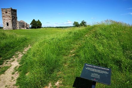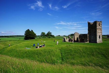 ここには新石器時代の紀元前2500年ごろ建造されたヘンジと、その内側には中世に建築されたノルマン人の教会があります。現存する教会は14世紀に改築されたものです。右側の土手がヘンジの盛り土です。