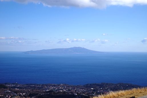 南南東の方角ですが、左に利島と右に新島が見えています。