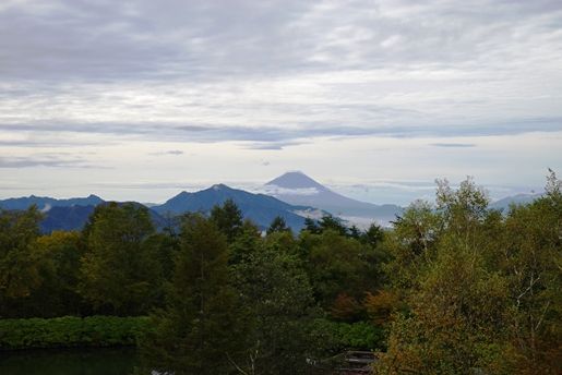 その翌日朝に見た、八ヶ岳川から見た富士山です。