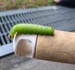 ようやく少し涼しくなって、夏の間ジャングルのようになった庭の木を刈り込もうとしたところ、ヒイラギに大きな青虫というかイモムシが何匹もついていました。キレイな緑色に細い毛をまばらに生やし、すごいスピードで這い回り、棘のある葉をむしゃむしゃと食べています。