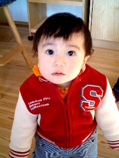 最近ちび太くんは『あんよ』が大好きです(*^^*)ちび太くんの後ろからちび太くんと両手をつないで、ちび太くんが歩きたい方に歩かせる。。。これが好きみたい(^^)bなので、今日は初めて近所のスーパーまでベビーカーは使わず、ほんとの『お散歩』で行ってきました!ウチの前はすぐ道路になってて危ないんだけど、ちょっと歩くと歩道になるから大丈夫かな…と。危ないところは抱っこして…。いざっ!!!ちび太くん、あんよですョっ!!!案の定、ちび太くんはにっこにこの大喜び(^щ^)v♪歩道の脇に小さな川が流れてて、ちょっと歩いては『これはなにかな??』と、何度ものぞきに行くちび太くん。ベビーカーやおんぶじゃなかなかゆっくり見れないもんねぇ~(笑)…とまぁこんな感じで、スーパーまで大体100メートル(…もないかな?)くらいの直線を、よちよち一緒に歩きました(*^^*)なかなかいい運動になっていいかもなぁ~~~。なによりもちび太くんが楽しそうだからねっ(^^)♪ ************************************** ↓↓↓ おでかけスタイル(*^^*)♪ ↓↓↓ ↓↓↓ さぁ!ママしゃん連れてって!!! ↓↓↓ ちび太くんが巻いてるこのマフラー。 なんとめめママのねーちゃんが編んでくれました!!! ねーちゃんのちび(もうすぐ2才♪)とおそろいなんだって!!! 一緒に並べて写真撮りたいよねぇっ!!ねーちゃんっっo(≧▽≦)o♪ すんごい重宝してるよ!ありがとね~~~♪♪ ************************************* さてさて。ちび太くんの今日のごはんは??? 朝 : ほうれん草入り納豆ごはん … ちび茶碗1ぱい(納豆1/3パック) きんぴら(大根・にんじん・ひじき) … ごはんにかけて みかん … 1/3コ 牛乳 … 少し 昼 : 納豆ごはん … ちび茶碗1ぱい(納豆1/3パック) ウィンナー&もやし炒め … ちび皿1ぱい みそ汁(白菜・ほうれん草・お麩) … ちびお椀1ぱい ヨーグルト … ちびカップ1/2コ おやつ : ばなな … 1/2本 ビー玉おにぎり(しゃけ・すりごま) … 6コ 夕 : 納豆ごはん … ちび茶碗1ぱい(納豆1/3パック) 鶏手羽元の煮物 … 手羽元1/2本、大根1/2コ、たけのこ1/4コ みそ汁(白菜・もやし・ほうれん草・お豆腐) … ちびお椀1ぱい ばなな … 1/4本 ほんとによく食べるようになったねぇ~~~っ(@0@)!!!