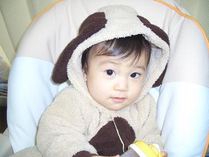 洗濯物かご入ったハンガーと洗濯ネットで1人楽しく遊んでいたちび太くん。その後ろでめめママ、『きゃぁぁ~~~っっ!!!かじゅ助けてぇぇ~~~っっ(>0<)!!!』←ちび太くんは『かずき』といいます(^^)b…と、パパさんにいじめられたふりをして、ばたばたしてみました(笑)するとちび太くん。『なになに?どうしたの???』と不思議そうにめめママとパパさんをながめてから、何を思ったか、遊んでいたハンガーを右手にしっかりつかみ、すっくと立ち上がりました!!!もしやちび太くんっ!!その武器でめめママを助けてくれるのねっっ!?たまたまだとしても、その行動がおかしくて、めめママとパパさん2人で大笑いしちゃいました(笑)…まっ、楽しそうだったから、ちび太くんも一緒に遊びたかったんでしょうけどね~~~(^щ^)b ************************************* そんなちび太くんの今日のごはんは??? 朝 : ほうれん草入り納豆ごはん … ちび茶碗1ぱい(納豆スプーン1ぱい) 肉団子入りミルクスープ(肉団子・白菜・しめじ・お豆腐) … ちびお椀に少し りんご … 少し 昼 : ひき肉の混ぜごはん(豚ひき肉・にんじん・ほうれん草) … ちび茶碗3/4はい (+納豆スプーン1ぱい) 肉団子入りミルクスープ … ちびお椀に少し ヨーグルト … ちびカップ1コ おやつ : ホットケーキ(にんじん・ほうれん草) … 3かけ 夕 : ツナのそぼろごはん … ちび茶碗ほぼ1ぱい(+納豆スプーン1ぱい) 煮物 … にんじん1切れ みそ汁(なす・ほうれん草) … ちびお椀1ぱい みかん … 3/4コ 牛乳 … ちびコップ1/3ぱい **************************************まだ『鼻水たろう』で頑張ってるけど、ちび太くん元気ですっ(^^)=3