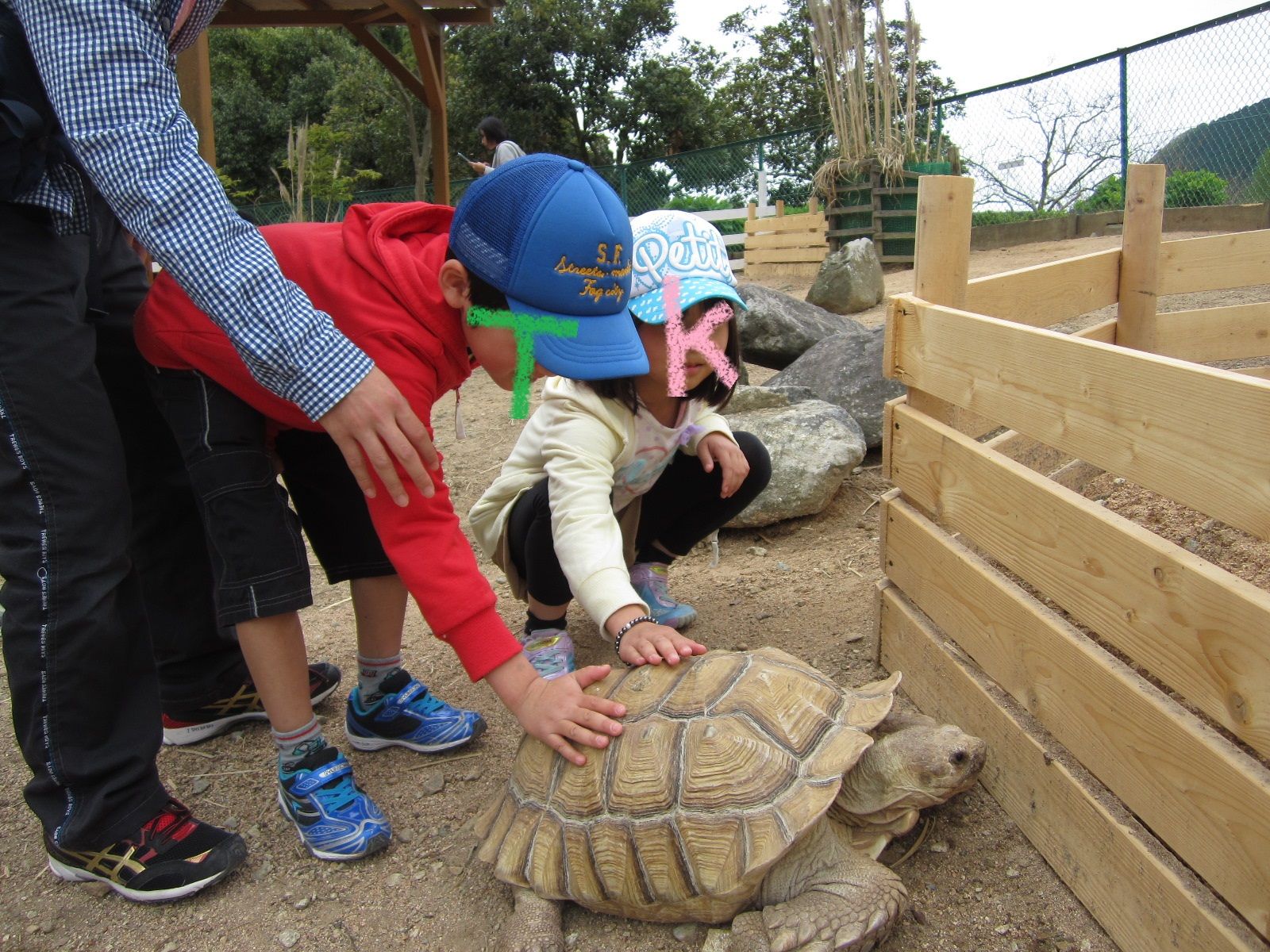 かめを触ったり…