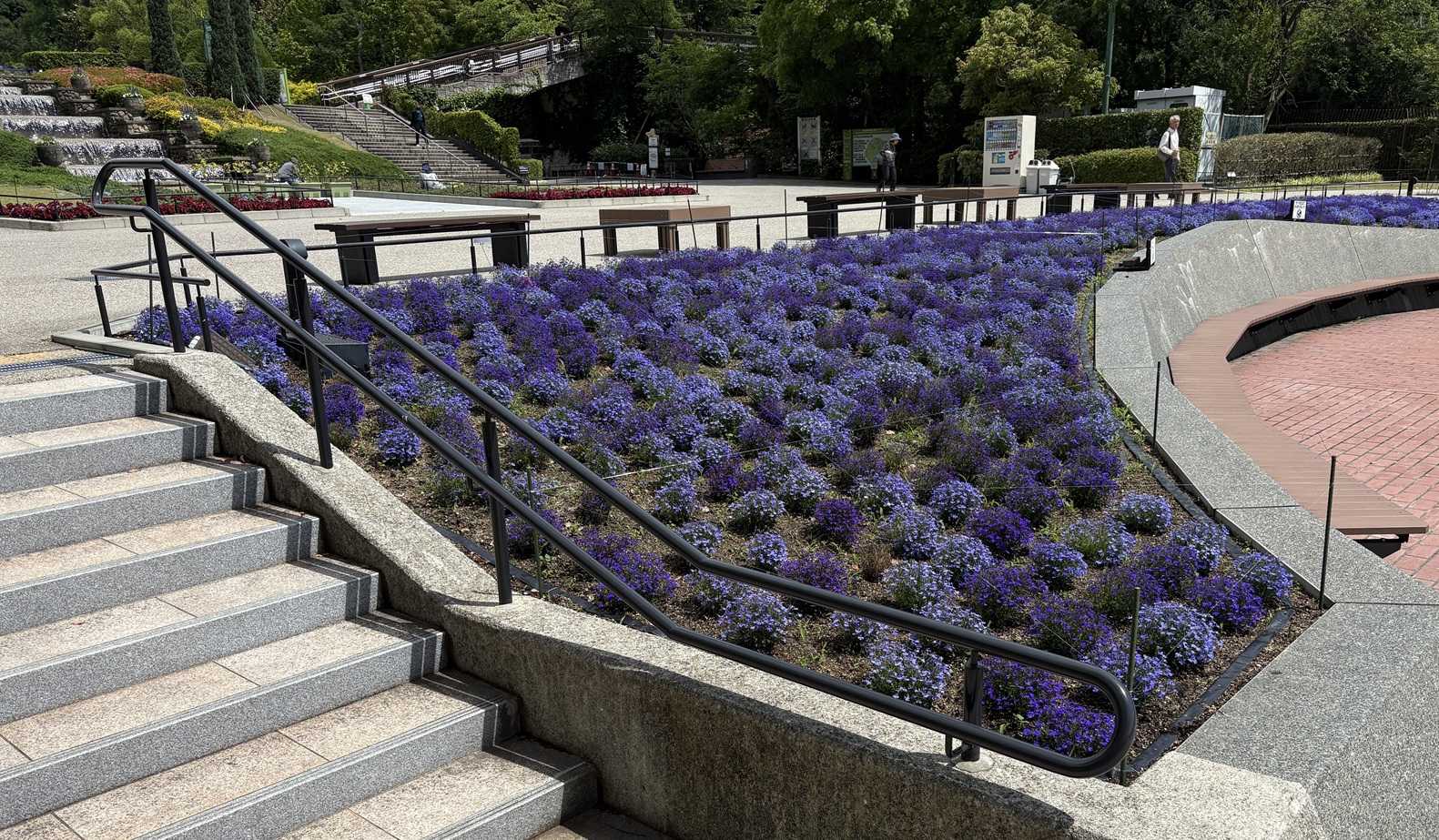 華厳の滝も凄い水量と、花が目立つ時期。ここでカフェオレを飲んだ。