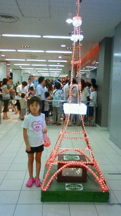 チビ子の希望保育にあわせてお盆は休んでみた今年は職場のウリちゃん親子とよっちゃん親子と一緒に東京見物に行くことにした(ウリちゃん親子はおばちゃんとばば・よっちゃん親子はおじちゃんとばば)ちょっと奮発して観光タクシーで回ることにした池袋でお買い物して、お昼食べて、タクシーで六本木・東京タワー・お台場・銀座回って池袋で下車って予定池袋着くなり買い物しまくるウリちゃんとばば×2チビ子は「和牛ステーキ定食」をウリばばにごちそうになりおかあちゃんは「海鮮丼ランチ」をウリばばにごちそうになった食後のお買いもの中にタクシーの運転手さんから後ろ髪を引かれるウリを引きずりいざ出陣六本木は車窓観光して東京タワーで時間をとってもらいましたがしかし時は8月14日お盆休みの真っただ中東京はがら空きでも観光地はメチャ混み展望台に上るエレベーターのチケット買うのに「50分待ち」諦めが肝心ってことでお茶飲んでお土産買ってだらだらして証拠写真撮ってお台場に向かいました時は8月14日東京湾大花火大会が開催されることなどつゆ知らない田舎者は会場のど真ん中を目指したのでしたさてお台場に着いたもののものすごい花火の見物客そういえば池袋でも浴衣を着た人がやけにたくさんいたっけとりあえずデックスお台場の前で下車してみたもののお店も「花火大会仕様」になっていてウインドゥショッピングどころではない道路も渋滞していて降りたはずのタクシーが後ろからやってきて・・・・迷わず乗りこみました「都内そこらへん回って時間に池袋に着くように適当にお願いします」頼んでみたけど渋滞は田舎者の想像をはるかに超えていた見物客の波はどこまでも続くようで30分で着くはずの池袋まで2時間もちろん予定時間は超過「超過料金は?」「こんな状況ですから、結構です」そうだよねっていうかスケジュール出ていたんだから花火大会ってことを知らなかったの?運転手さんおまけに宝石泥棒ピンクパンサーの犯人護送の規制にも逢いましたなんだか普段見られないものを見に行った東京見物でした右半身の不自由なウリばばは水族館に行きたかったらしくさっき会ったら「水族館」と叫んでいました夏はやめようね~と言ったら「秋」だそうですでもねマミー、都会の冬は暖かいから冬でも大丈夫だよ