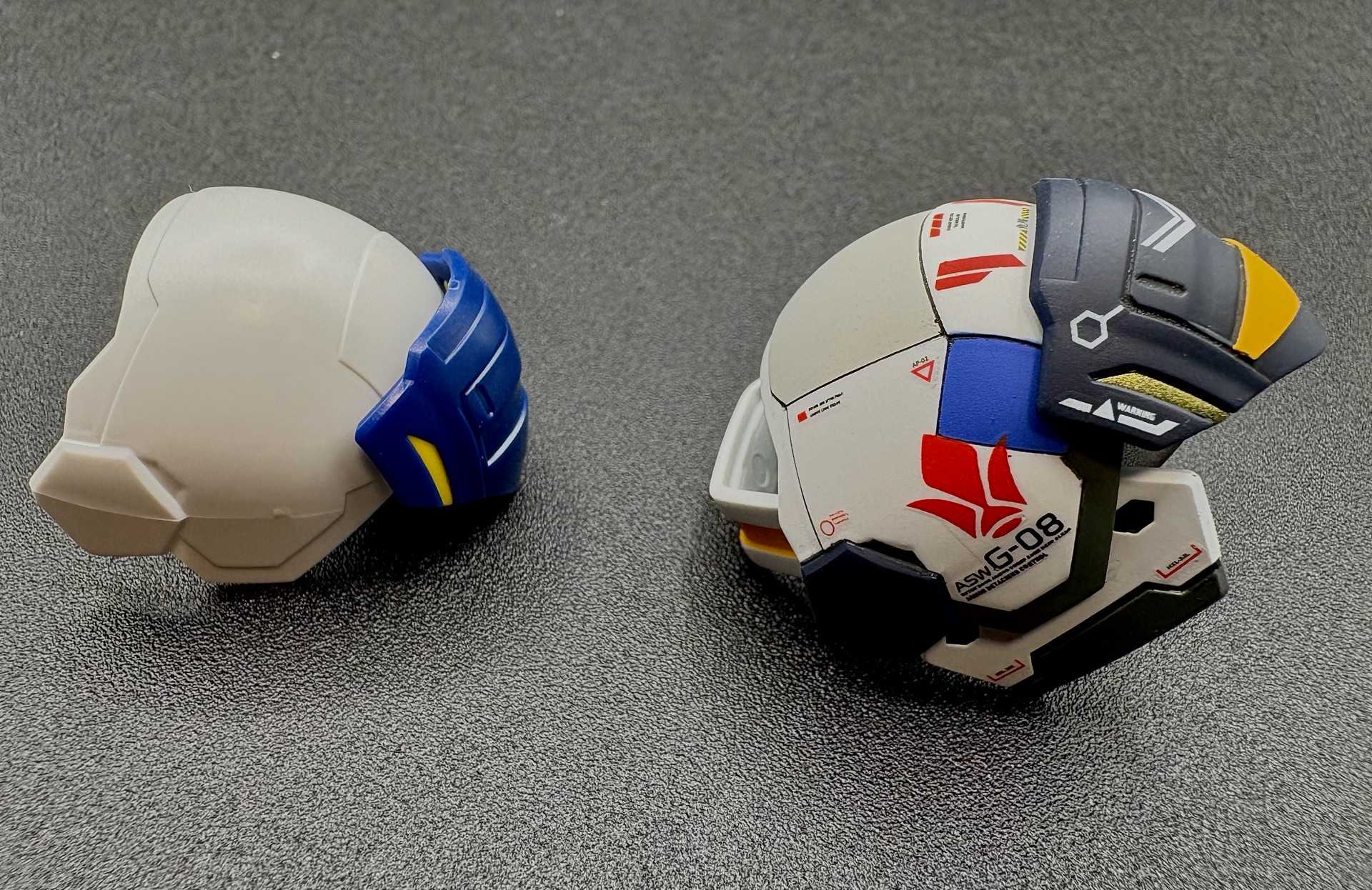 プロポーションはズングリした感じからシュッとしたボディに。色は元が真っ白すぎたので自分好みに仕上げました。塗り分けはマスキングなどの手間で時間かかり苦労しましたが・・・だいまんぞーーく😝