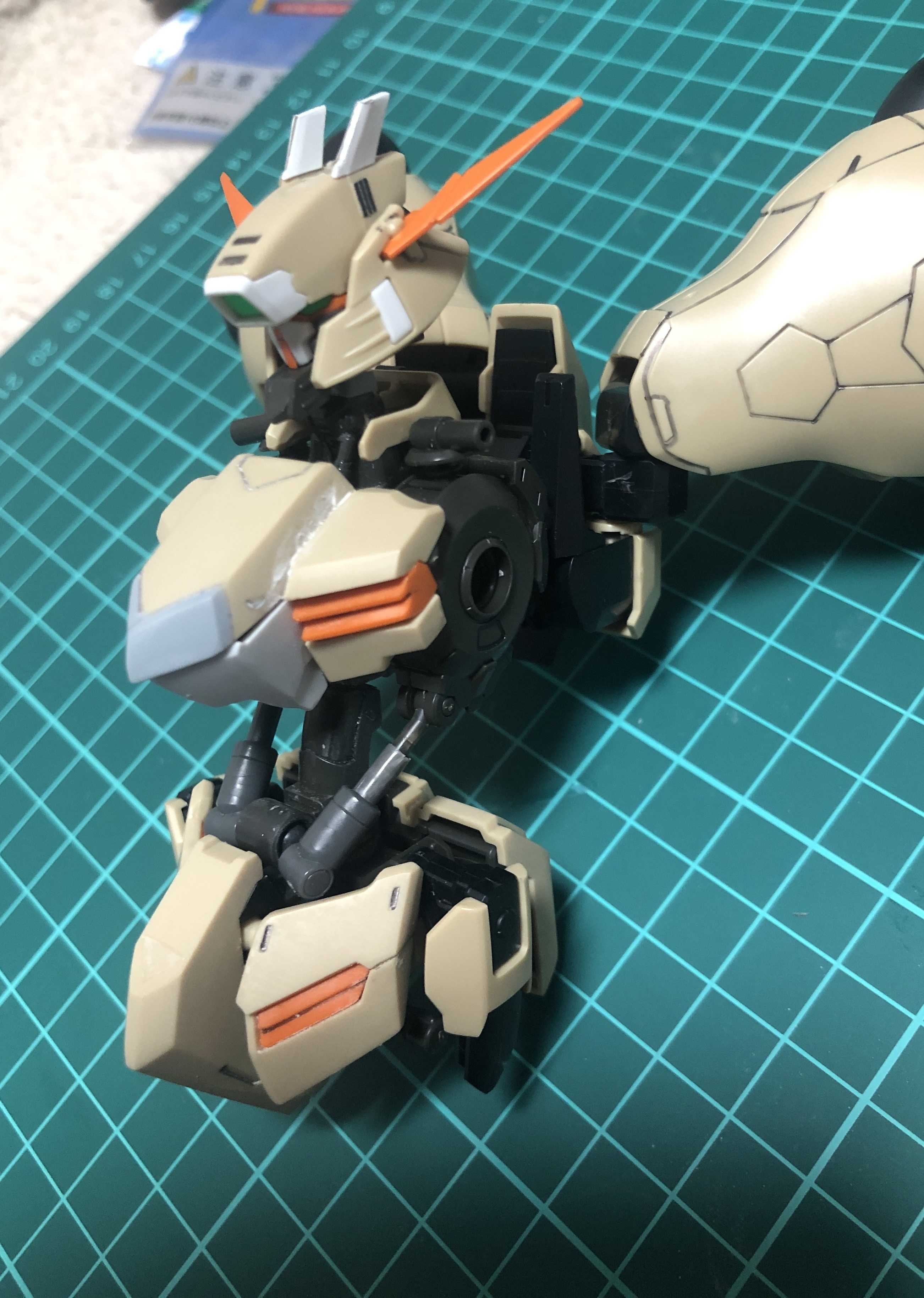 上半身だいたい出来ました。ノッペリして寂しかったのでプラ板やスジボリをして情報量をプラス🙋♂️白パーツはディテール何もなかったのでここも追加です。首周りのパネルです。バルバトスルプスレクス同様に全パーツエッジを尖らせて作っていきまーす🔪