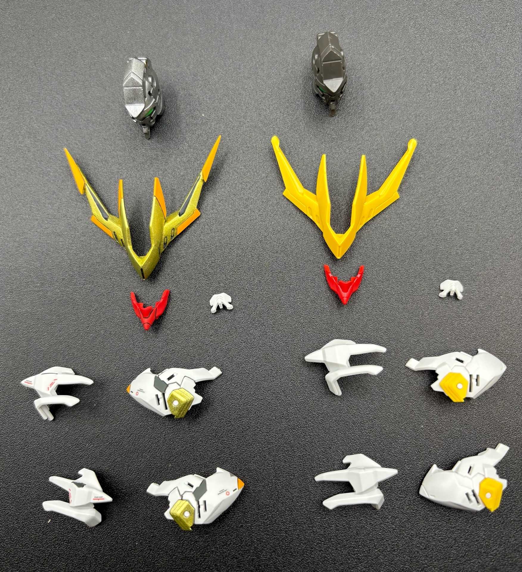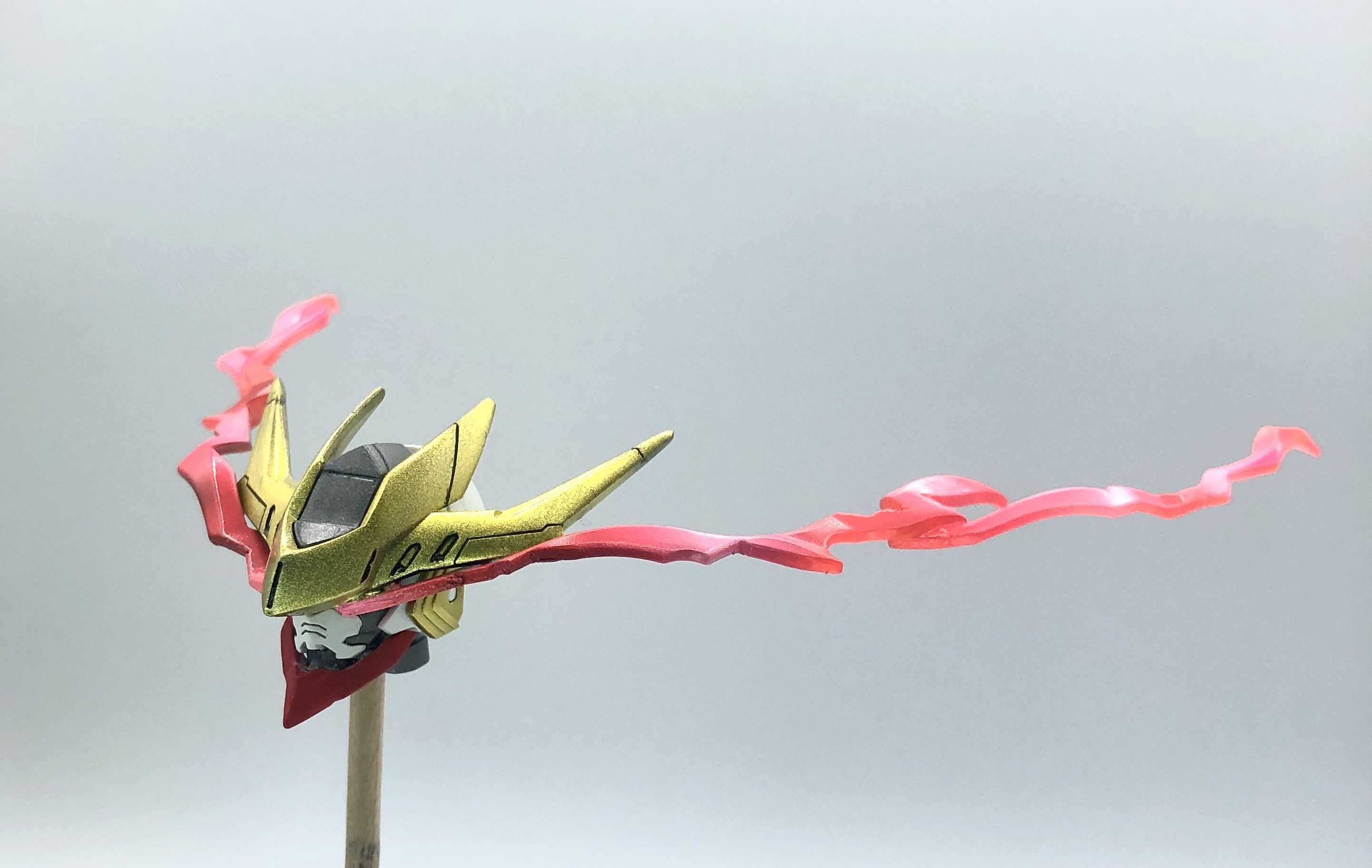 頭とりあえず形になりました。ツインアイは悩んだのですがルプスレクスっぽさ?(笑)でキャンディレッドにしちゃいました。ん!かっこよい👍アンテナなどの色も黄色かゴールド系かも悩みましたが思い切ってゴールドに。アンテナ裏の肉抜きを埋め若干シャープ化、エッジを意識して削ってみました🙋♂️首を延長したのですこしアゴ先端を延長しました。あとはスミ入れ、デカール、コーティングでかんせーーーい!