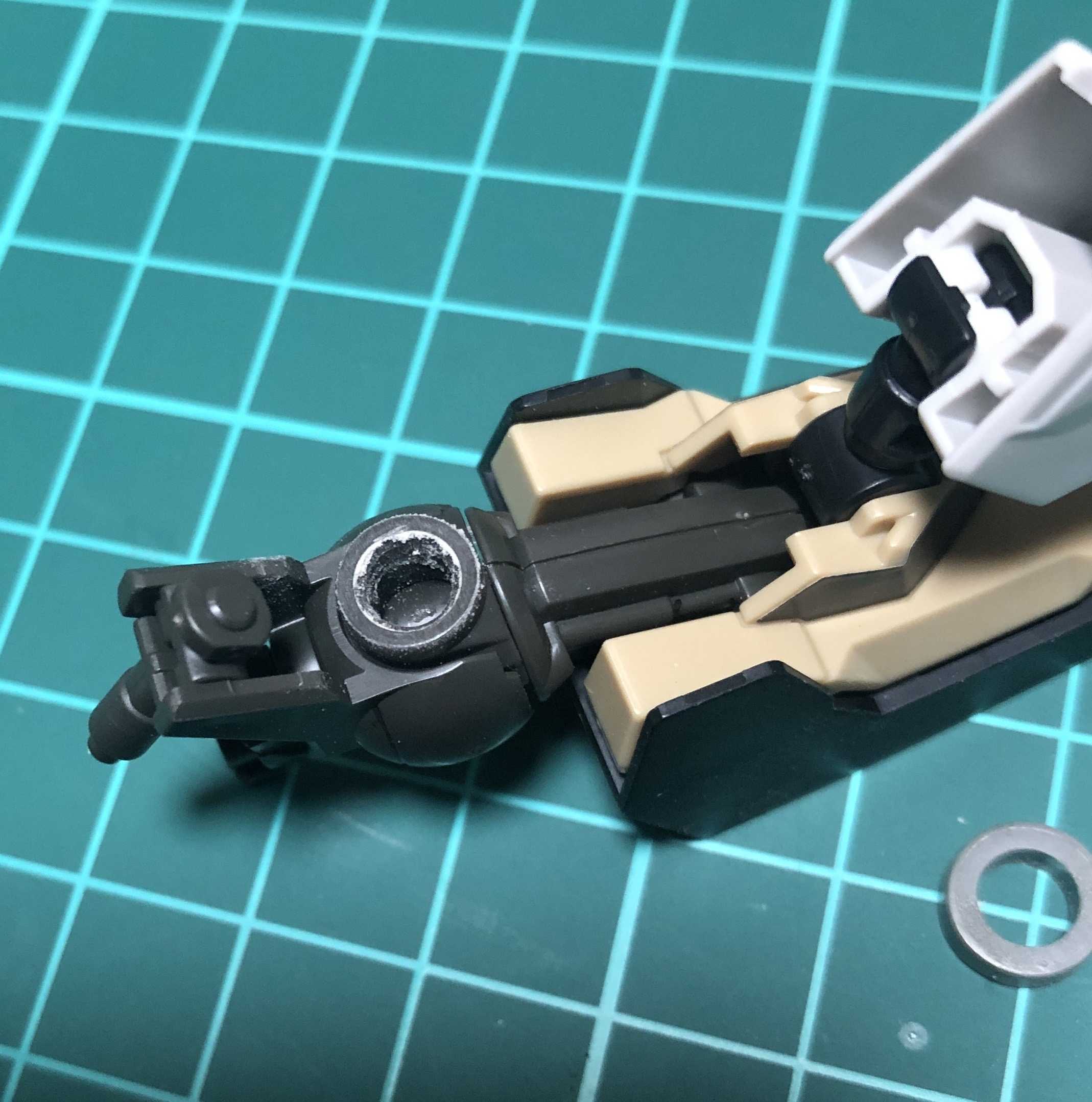 腕の外装をスジボリしました。全体的なバランスみ見て追加です。丸部分ディテールが中途半端だったのでマイナスモールドを取り付けました。