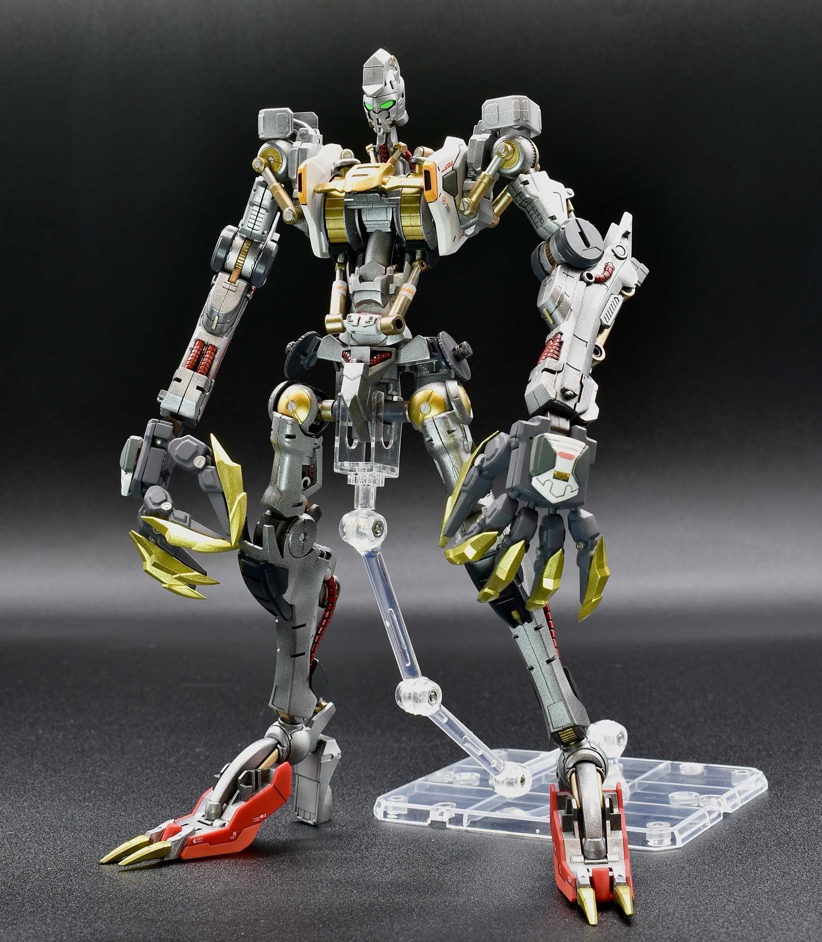 バルバトスルプスレクス用の龍王に交換するキットを手に入れたので使います。腰のパーツだけ欲しくて買ったのですが。。。フレームの延長パーツが付いていたのでそのまま使ってみます!首はパーツ交換のみ。腰は上から被せるだけ。ディテールもゴツゴツした感じで大型化になりました。ダンパーは届かなくなるのでプラ棒で延長しました。色塗ってしまいましたが腕付け根に左右にダンパーが2コづつ増設できるフレームをつけました。追加ダンパーなど細かいパーツは全て塗り分け。パイプは赤で筆塗り。デカールとメタルパーツ取り付けてかんせーーい!