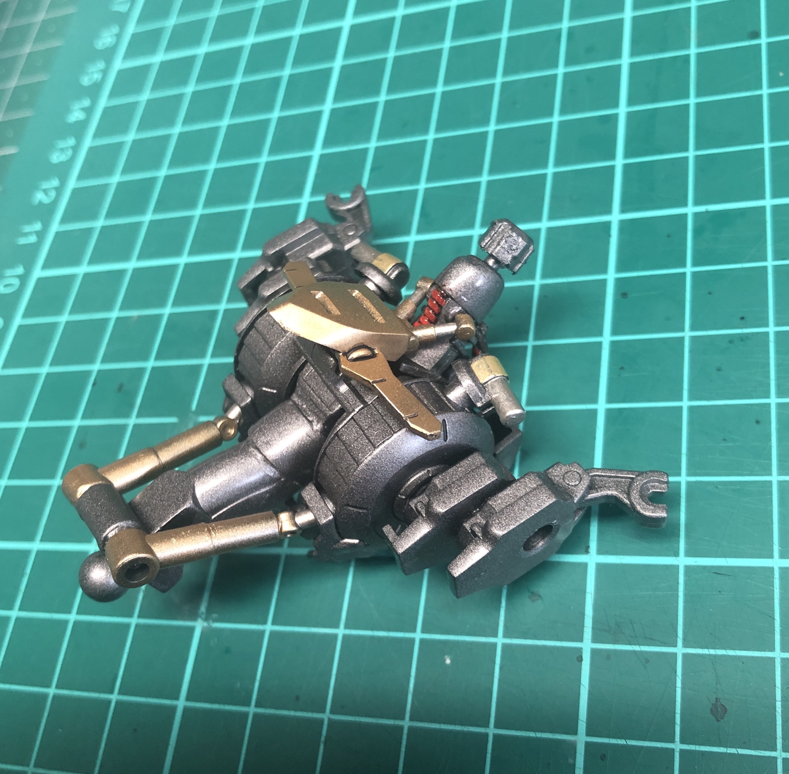 腕大体出来ました💪後はスミ入れとデカールで完成です。腕は2ミリくらい延長しました。強度を出すために真鍮埋め込みです。ちょうど丸いポリキャップがあったので簡単に延長できました。丸い部分はマスキングでエアブラシで塗装。シリンダーとパイプは筆塗りで塗り分けフレームはかんせーーい!上半身同様に追加したスジボリから塗り分け。段々と出来てきましたが最近暑いし忙しいのであまりすすまなーーい🥺