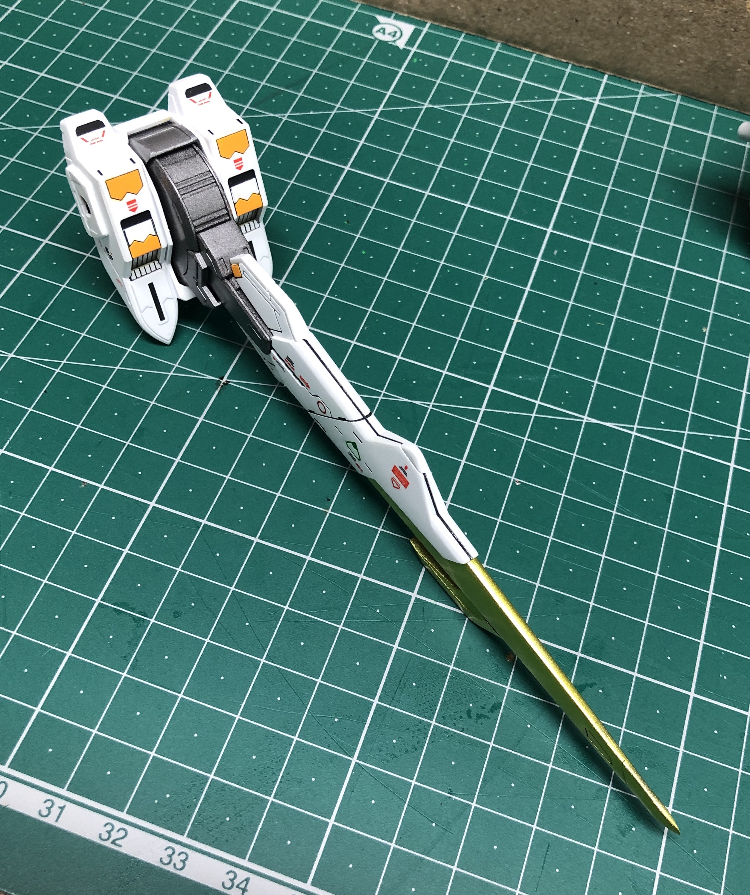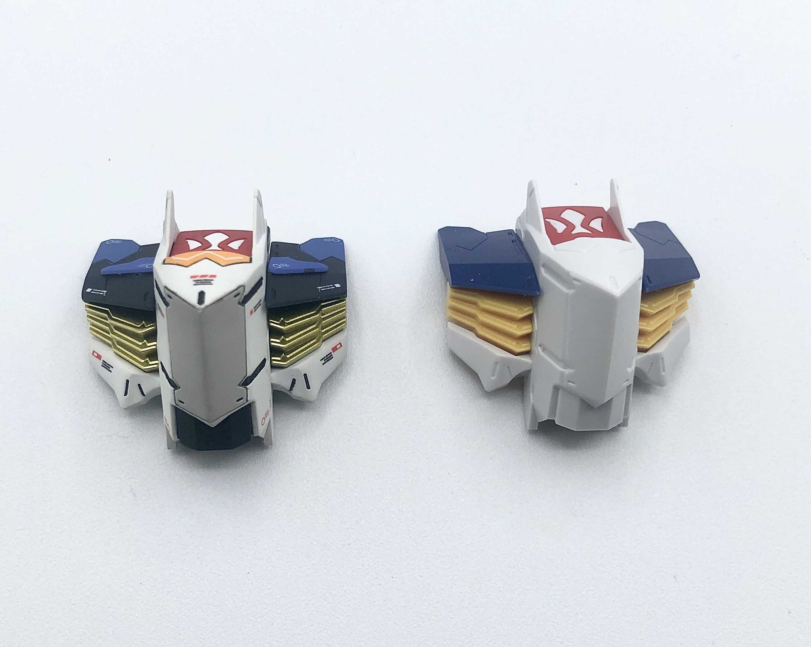 テイルブレイドは先端の金色部分を延長したのみです。比較です。寂しかったのでイエローを入れて塗り分け。追加武装がつけられてるようように楕円部分にポリキャップを入れておきました。これでかんせーーーい!