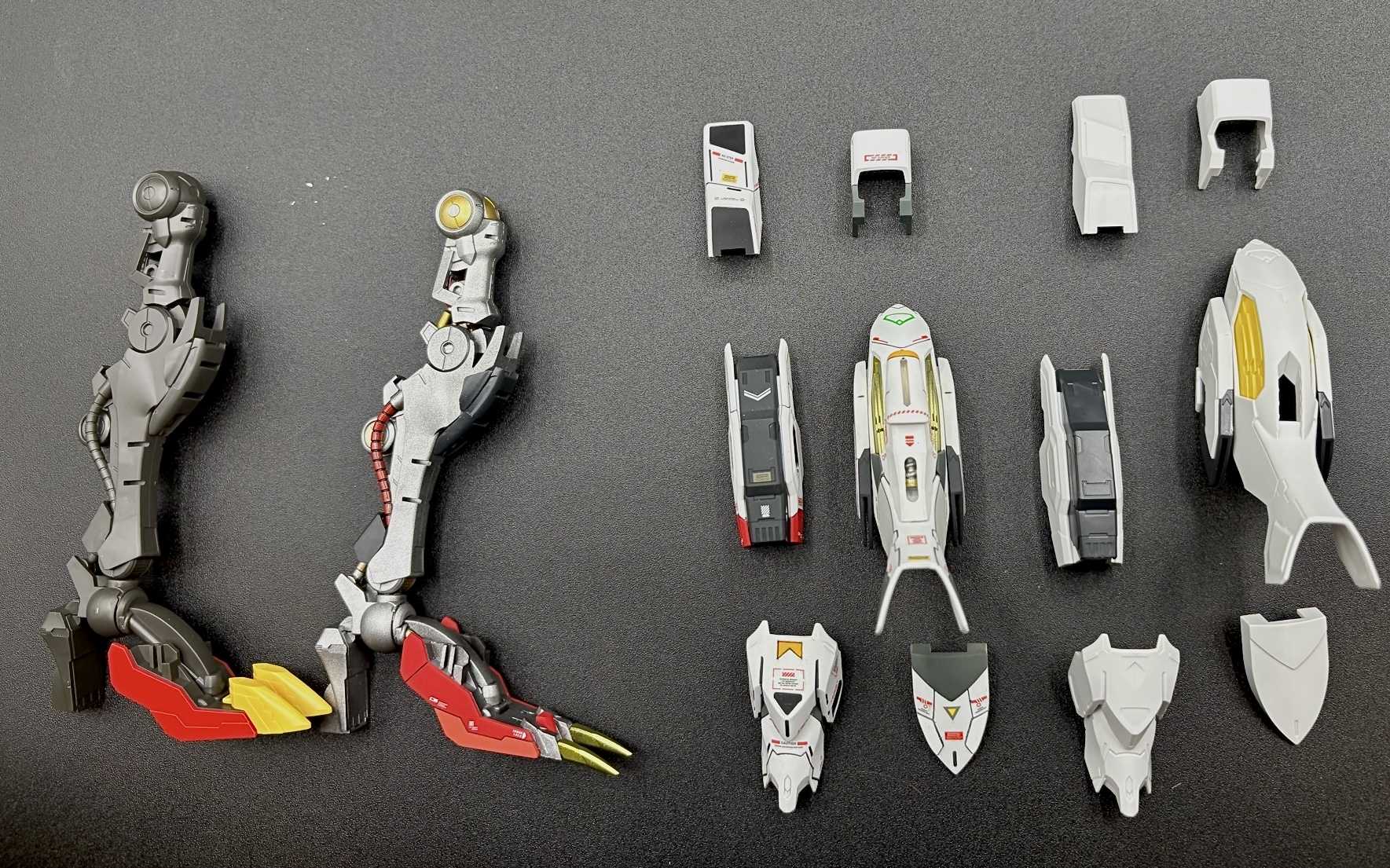 胸部分のダクト上です。スジボリを追加後に少しゴツゴツさせたかったので、ダクトの庇部分をつけてみました。塗装完了🙋♂️エナメルで追加の庇は部分は筆塗りです。スジボリを少しして白部分をグレー2種類で塗り分けました。全体的に尖らせるように意識してヤスリがけ。先端は特に包丁を意識して尖らせました🔪パイプは赤で塗り分けましたが多分装甲つけてしまうと見えないような気が。。装甲は外すこともないのですが。ま、いっか(笑)パイプやシリンダーはゴールドとシルバーで全て塗り分け。メインの腰シリンダーはゴールド2色で塗り分けて少しゴージャス🙋♂️後はデカールと組み立ててかんせーーい!