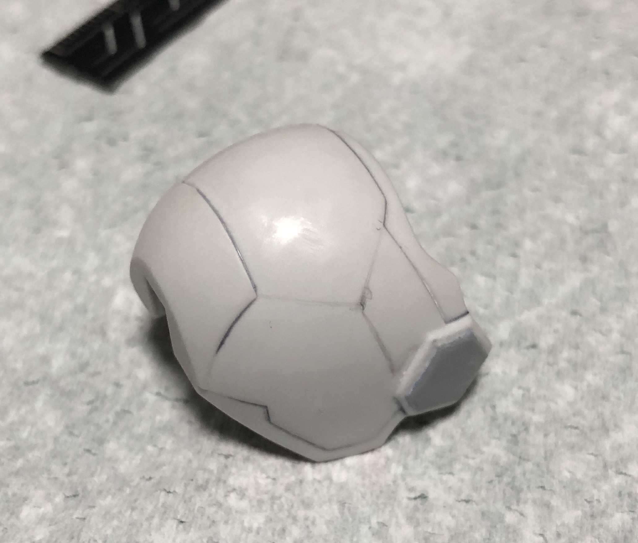 頭部はスジボリ追加とアンテナシャープ化のみです。ノッペリで寂しいのでこんな感じにしてみました。