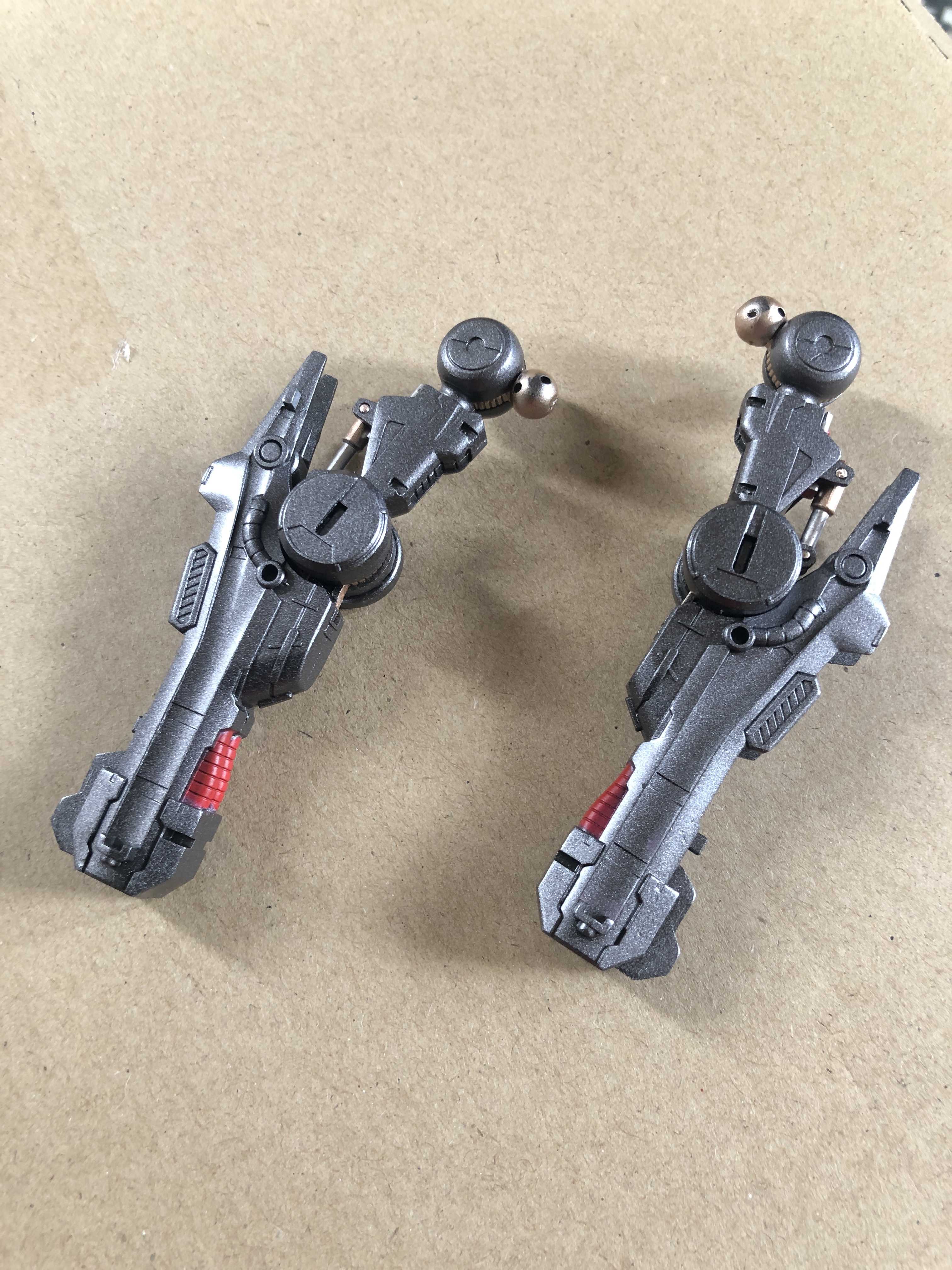 肩を上にした為にフレームとのスカスカ感、小さくなってしまいバランスが悪くなっらてしまったのでバランスを見て大型化し、スジボリを追加し塗り分けました。バーニアは社外品に交換し大型化。改造前は全くみえなかったものがチラリと見えるように。スジボリ追加とマスキングし塗り分けです。部分的に明るい色を入れたりしています。マニピュレーターはメタルパーツを貼り付けてみました。前回て違い指の関節は動きませんがかわりに耐久がアップしたと思います。(根本は稼働します)1/60のハンドはなかなか見つかりませんので今回は社外品で改造。爪の造形もお気に入り🙋♂️