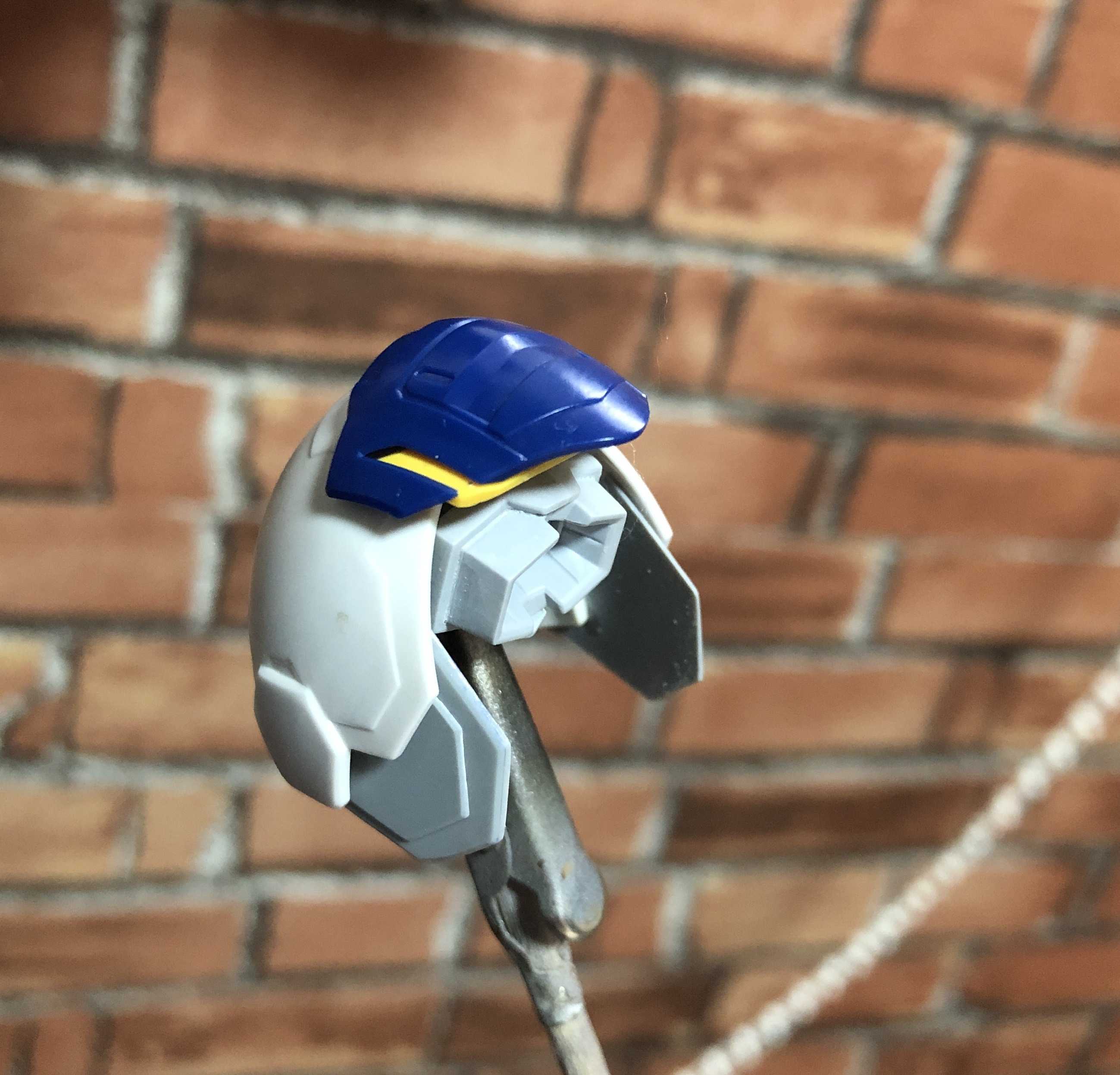 肩を大型化し、マッチョ💪になったのでジャンクパーツを切ったり削ったりして大型化。バランスを見て塗り分けました。ガンダムらしく5角形を追加して塗り分け。エッジを尖らせるようヤスリがけスジボリ追加して塗り分け。首の装甲は大型化しかんせーーい!