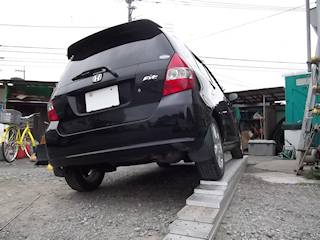 フィットGD1を神奈川陸運支局へ、ユーザー車検を受けにきた話の続きです。7番ラインで見学を終え、その7番ラインの列の最後尾にフィットをつけます。 車の列は、1台1台と、検査ラインへと進んでいきます。ぼくの前はおじさんで、いかにも初めて来た感満載の人です。 事前のチェックからして、係のお兄さんがじゃっかんあきれ顔になるぐらい車の操作ができていません。 軽くてんぱっています。 この人の後ろなら、落ち着いてできるwぼくの番がやってきました。 係のお兄さんに書類を1式わたします。 この書類ですが、クリップボードが必需品です。 ぼくは知らなかったので持ってきていません。 だから、バラバラばさっと渡すしかありません。パッシング ライト ハイビーム ウィンカー ハザード等々、なにも指示される前にがんがん出していきます。 直したウィンドウウォッシャーも、シャーシャー元気よく出ます。 「フォグライトもつけてください」お兄さんに言われました。テール周りもみてもらい、エンジンを止めてボンネットをあけます。 お兄さんが車体番号などを調べます。 ここで、気がかりだった光軸検査についてきいてみます。「フィットはハイビームが拡散してしまうそうなので、ロービームで検査してもらいたのですが」「ラインの入り口にあるインターホンで言ってください」とのこと。 よしよしオッケー。無事、事前チェックを終えてラインへと向かいます。ラインの入り口のインターホンでロービームでの検査をお願いします。 車の種類を訊かれて、フィットと答えます。 そしていよいよ検査です。◆サイドスリップ検査前輪のサイドスリップを測る検査です。 サイドスリップとはなんぞや? いいんです、そんなものは知らなくても。 大事なのは、その検査をする板を通過するさいに、ブレーキ踏んだり、ハンドルきったり、加速しないようにすることです。 無事合格です。◆スピードメーター検査ローラーの上に前輪をのせると、後輪にはローラーが動いてきて勝手にのっけられます。 ギアを入れてアクセルオン! スピードメーターが40キロになったところでパッシングします。◆ブレーキ検査ローラーがうりうり動き出してタイヤがまわされます。 ブレーキをふむ はなす と指示されるのでその通りに行います。 サイドブレーキも同様です。 ◆光軸検査車の前に、四角い箱の検査機械が下りてきて、なにかをさぐるように動いています。 左右をそれぞれ検査します。◆排ガス検査エンジンをかけたまま車をおり、マフラーに検査棒を自分でつっこみます。 これは事前に確認できていない項目なので、ちょっと不安。 でも問題ありませんでした。◆下回りの検査前輪を床から出ているタイヤ乗せ(なんじゃそりゃ?)に乗せて、ギアをニュートラルに、サイドブレーキを引かず、ハンドルから手を離します。 「エンジン止めてください」と放送されて、あわててエンジンを切ります。 すると車の下でガシャガシャコンコン音がして、なにやら検査をしているようです。 前輪を左右に動かしているようで、ハンドルがくるくるまわるので手を触れないようにしますよう。◆総合判定ラインの最後尾にある、総合判定室に書類を出します。 「ごめんね、光軸不合格になってたね。 :※○▼・・・」なんだかよくわからないけど、光軸検査が合格しているのに不合格と判定されていたようです。 検査用紙に合格のスタンプを押されて、無事検査終了です。◆車検証の交付2番建物の6番窓口に書類を提出すると、ほどなくして車検証とステッカーが交付されます。 ちょっと感動♪ これですべての手続きが終了しました。◆総評ブレーキローターの交換や、ハブベアリングの交換など、想像を超える作業をへて、無事ユーザー車検を合格しました。 検査自体は、難しいことはなく、わからなければ検査員さんに言えばつきそってやってくれるようです。 ぼくの前のおじさんは、完全付き添いでやっていました。 受かればいいというわけでもないので、安易にユーザー車検を受けるのをおすすめはできませんが、安くあがるのはやはり魅力的ですね。今までかかった費用の合計:72,483円