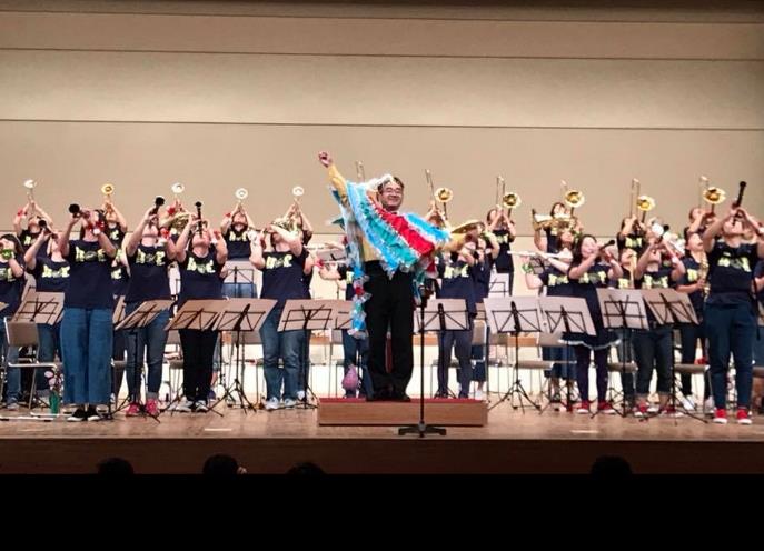 ママさん達のブラスバンドは子供達もメンバーだ。それをまとめあげる同級生は俺たち栄東校の誇り。凛々しかった!!