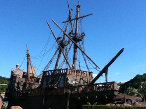 修学旅行1日目。バスで志摩スペイン村。昨日の雨も上がり爽やかな青空。ピレネーの一番前に乗った。