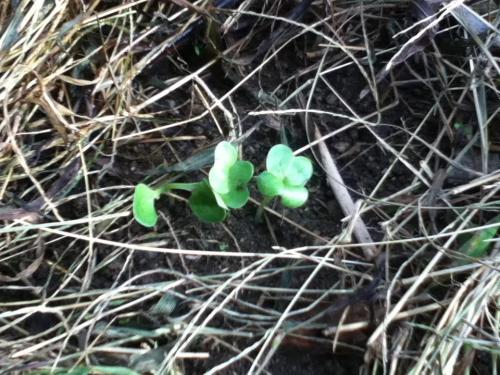 先週の日曜日に植えた大根の種。順調に発芽してくれありがとう。今朝は6時すぎに畑仕事。紫外線を浴びる前に土を耕し大根の種を植えた。今回は軍手をしてシャベルできっちりやったのだ。来週の今頃はこんな感じで発芽してますように。