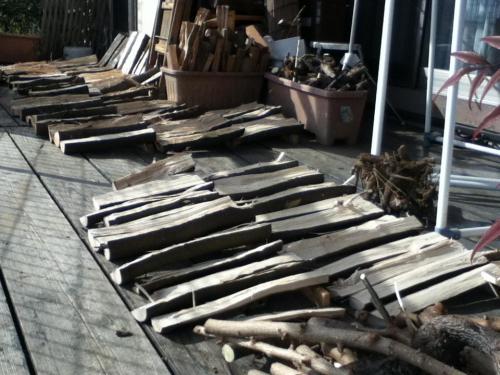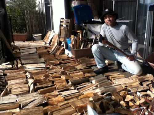 本日の成果 2013.1.6 日ここ数日「不安」な日々を過ごしていた。日に日にその思いがつのる。薪不足である。何とか12月まではもった。しかしこの1月は果たしてもつか。不安で不安で仕方がなかった。しかし師匠のおかげで7本の木をいただけた。ありがとうございます。朝から、運搬・切断・薪割り・天日干し、…。これら一連の作業を繰り返した。緩和した腰痛をかばいつつ。昼過ぎに終了。めちゃめちゃ筋肉を使った。不安のち筋肉鍛錬の成果を眺め達成感にひたる。どうにか1月はもちそうだ。あとは2月3月。できれば来季の分までは確保したい。