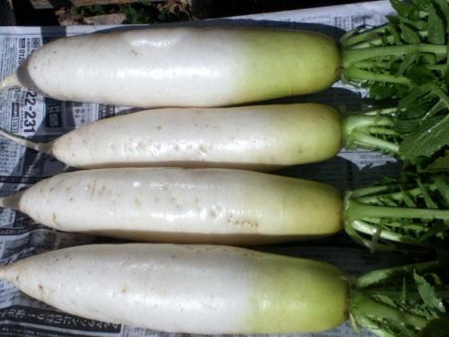 薪仕事を終え庭の大根を収穫してみた。おお、今年のは真っ直ぐだ。種まきの日には苦労したからね。とりあえず4本収穫。まだまだたくさんあるので心強い。昨日百貨店で上品な葉付き大根の漬け物を見かけた。これなら私にも作れそう。真っ直ぐ大根4本を薪の隣に干したのだ。