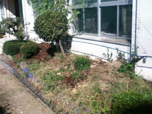 刈り取った野草は、ごみではない。もちろん枯れ葉も、ごみではない。自然に返すと土になる。ダンゴムシやミミズ、微生物などが分解する。だから豊かな土となる。これは6年生の理科で教える内容でもある。私は家でも学校でも野草や枯れ葉を自然に返している。理科室前の空き地に沢山の野草や枯れ葉を集めている。一昨日はその片隅に菜の花の種を植えました。