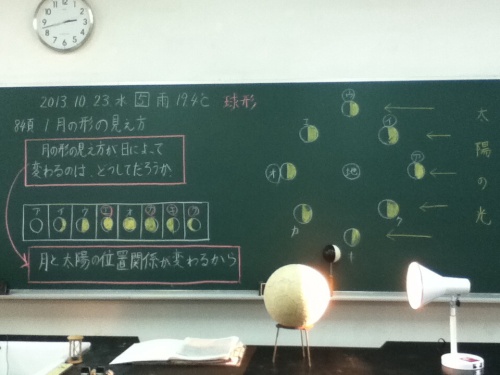 水曜日の5時間目は6-2の理科。そして本日5時間目は学習参観。時間割どおり理科の授業をしたのである。「月の形の見え方」視点を変えればくっきりわかる。しかしその視点が難しい。手のひら大の人形が欲しかった。