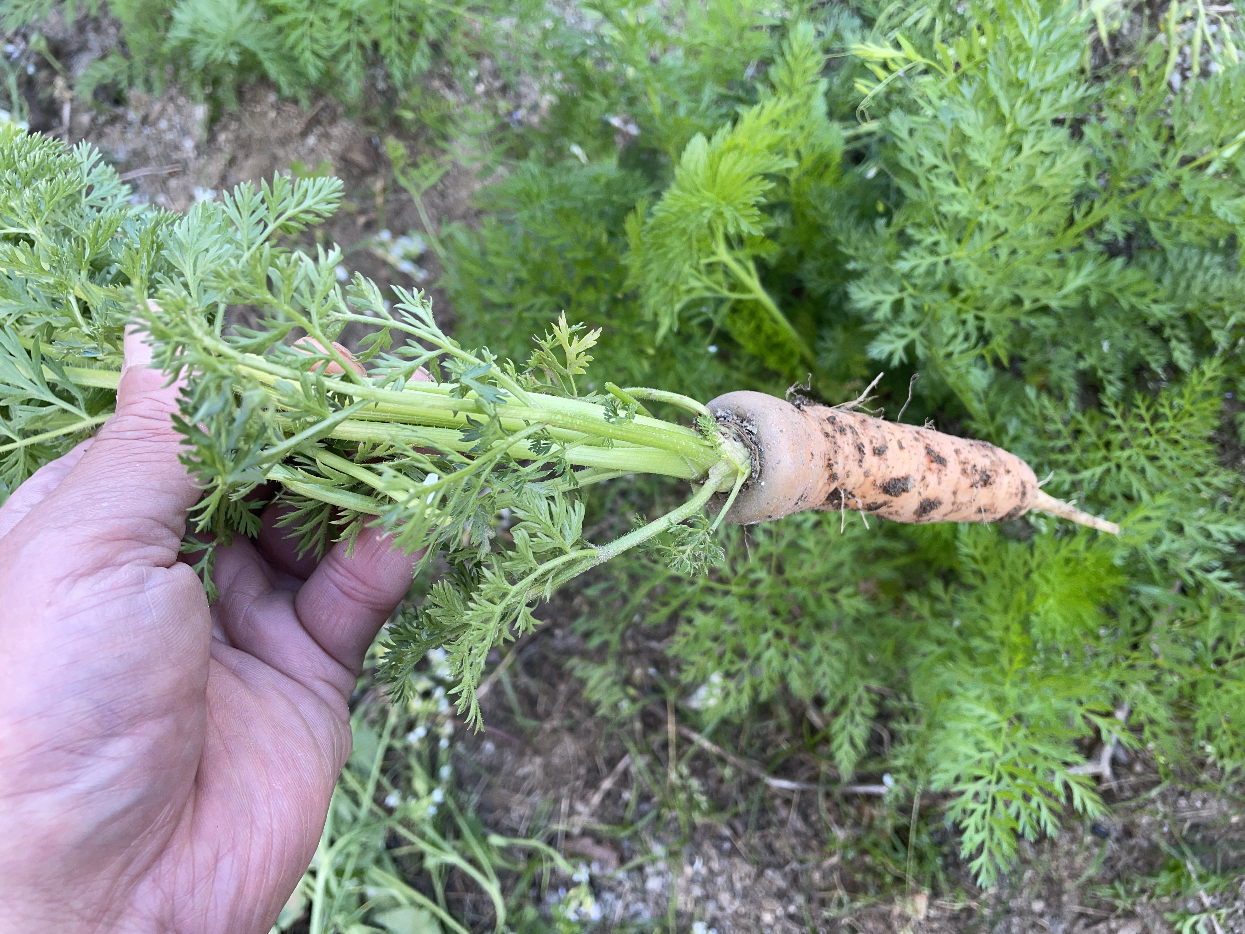 庭の畑に光洋箕面店で買った人参の種を去年蒔いた。冬の終わりごろからパセリを細かくしたような葉が目立つようになった。それがもう沢山しげってきたので1つだけ慎重に慎重に抜いてみた。すると小ぶりだがニカイマート(箕面駅付近にあるオーガニック店)で売っているような人参ができていた。松永種苗 ニンジン 人参 一代交配 メロディーライン 小袋ニンジン種子 【黒にんじん 300粒ペレット】ニンジン 種 『紅映二号』 丸種/コート1万粒カラフルニンジン 種 『イエローハーモニー』 丸種/小袋(320粒)