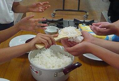 と言いつつ子どもたちは楽しげにごはんを握る。