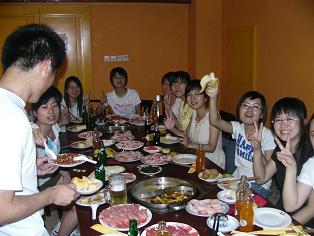 先週の土曜日の夜は、私のクラスの学生たちが謝恩会を開いてくれた。 大学に入ったばかりの時から、今年2年生が終わるまで2年間ずっと一緒に頑張ってきた 学生たちだから、「学生」というより「友達」「同士」「仲間」「戦友」という感じがする。 彼女たちのために、できることはすべてやり尽くしたという自負は持っている。 いつも学生たちのことだけを考えて、自分の時間は学生たちのためだけに使ってきた。 楽しかったことはたくさんある。 辛かったこともあった。 特に他の学年や、他の学年の日本人教師から「生意気だ」と言われた時は傷ついた。 それでも、授業の時はいつも笑顔と真剣さが溢れていたし、 試験の成績も他のクラスより断然高かった。 1年生の時から、日本人教師と積極的に交流していたおかげで、 会話は流暢だし、発音もきれいで、何よりも日本語を話すことを好きになってくれた。 私のジャンパーに「HAPPY」と刺繍してくれたのも彼女たちだし、 私が疲れた時に、随分と気を遣ってくれたのも彼女たち。 謝恩会は「回転火鍋」。 回転寿司のように回っている皿を自由に取って、火鍋に入れるというもの。 みんな若いだけあって、よく食べた。 火鍋の具だけではなくて、ケーキや果物、アイスクリームまで、 どんだけ食べれば気が済むんだい! と言いたいぐらい食べた。 こんな学生たちと2年間一緒に過ごせたことは、私の人生の中でも 最高の幸せだったと思う。 来年は、新しい先生にその幸せを分けてあげてください。 そして、何よりあなたたちがもっと幸せになってください。 いよいよ飲み食いスタート。 これは序盤戦。 いつも感心させられるのは、私の学生たちは、中国語を話さないということ。 友達同士の間でもずっと日本語で話をしている。 こんなクラス、上級生の中にもないだろうと思う。