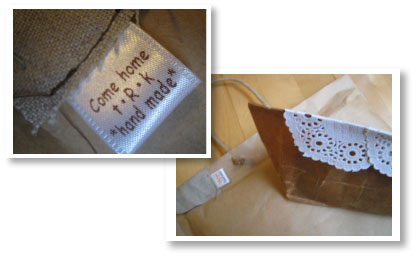 とっても素敵な贈り物が届いたので紹介します。 贈り主はRk.mommy.ちゃん。実は、幸運にもRk.mommy.ちゃんのカウプレに当たったわたし。Rk.mommy.ちゃんの作るものはとってもセンスよくって届くのをわくわくしながら待っていたんです・・ラッピングもほら、とっても素敵でしょ?オリジナルのタグがついていたり、かわいい切手が貼ってあったり、開ける前からなんだかどきどきしてしまう素敵な贈り物です。・・で、気になる中身はというと・・これまた素敵。decola*のストライクゾーンにビューンって直撃。笑 まずはワックスペーパーの袋の中にはいっていた雑貨たち。カレルのティーパックにキャトルのいちごジャム、それからアルミカップ。これはたぶん、ベトナムコーヒーとか淹れるものなのかな?(違ってたらごめんね。)そしてオリジナルのポストカードの下に写ってるのがなんともかわいいファスナーつきポーチ。花柄のふんわりガーゼ生地で裏地はワッフッル。とっても優しい感じなんです・・ラウンド型になってるところがとってもかわいいでしょ?・・で、これだけでも充分素敵なんだけど、実はもうひとつ。。 これ、これ・・もう、めちゃくちゃかわいくない~??写真じゃわかりにくいかもしれないけど、サイドにスリットが入っていたり、持ち手も布が切り替えてあったりとにかく手が込んでるし、とってもかわいいの♪リネンとアラン模様っぽいニット地との組み合わせでブラウン系が好きなわたしは目がハートになっちゃいました!Rk.mommy.ちゃんったら、わたしの趣味を知ってたの~?笑心のこもった素敵な贈りもの・・どうもありがとう。大事に大事に使わせてもらうね♪心がほんわか、優しい気持ちになれるRk.mommy.ちゃんのHP、よかったら遊びに行ってみてね。ランキングに参加しています。お暇があればポチっとお願いします!人気blogランキングDesigned by ennui**