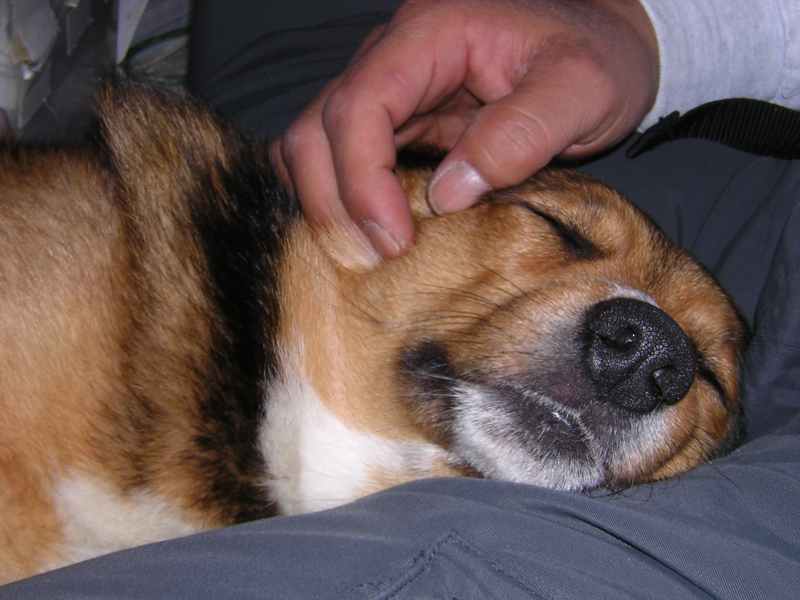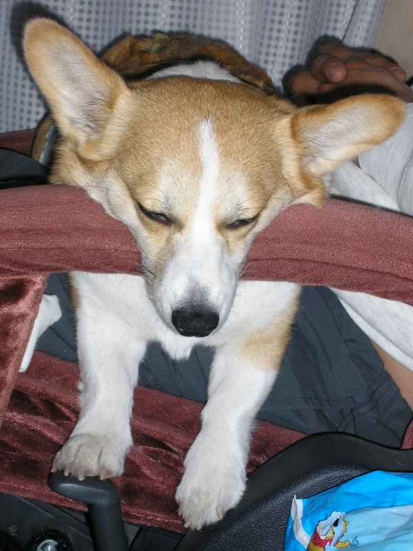 パパの操縦が終った後は疲れてパパの足の間で熟睡です