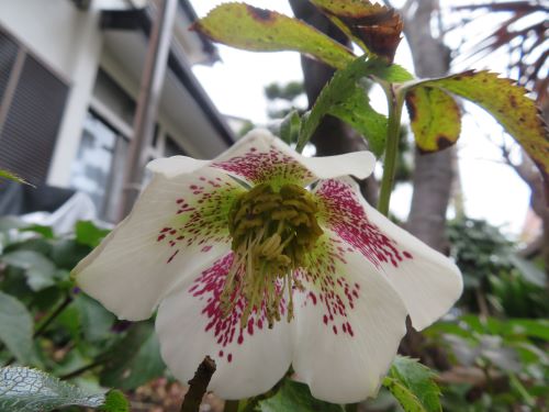 10年以上前に来た、クリスマスローズ、名前もわかりませんが、無事に咲きました。10年以上前のことです。まだ、クリスマスローズが、今ほど多くなかったと思います。母が、どうしてもほしいと当時は銀座の三越の屋上でクリスマスローズが売ってるからと、一人では行けないから行ってほしいと言われ、仕方なく行った事があります。クリスマスローズがこんなに長く咲くとか、増えていくとか、知らなかったのですが、みるみるうちに増えて、あちこちから芽を出して、一時はクリスマスローズの庭のようになりました、しかし、やはり10年も過ぎたり昨年の夏のような、猛暑になったするうちに株もだいぶ減り、今年は咲くかどうかわからなかったのですが、数本花をさかせました。今は種類も増えて、一鉢数万円もするのもあり、とても貴重な花になりました。今年はなんとかもう少し株が増えるように、整えていきたいです。