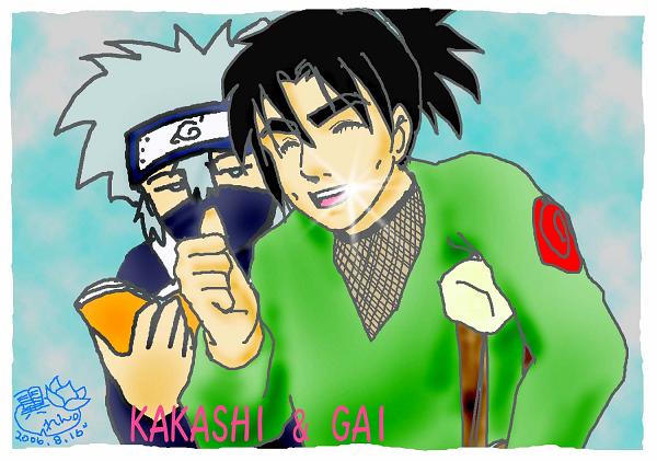 翼蓮の妄想 大ばく進中です♪ あのおかっぱになるまでのエピソード、書きます・・・そ・の・う・ち・♪ このスナップ写真にはもうすでに当時から『永遠のライバル』視されていた・・・カカシ君が・・・興味なさ気に傍に立っています。 幼くして頭角を現した天才忍者カカシ・・・「自分ルール」で、己を鍛えぬいたガイ・・・サスケとナルトの二人のようにカカシとガイは対極にあるライバル・・・ カカシには、同世代で気安く語りかけてくる者など当時は少なかったに違いありません。だって、身をおいている環境があまりに違いすぎて・・・。 だから、最初はガイのことが疎ましくウザかったはずです(笑どんな風にして、今の二人になっていったのか・・。 想像していたらこんなスナップになってしまったのでした!