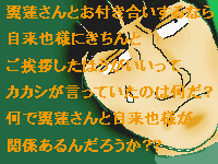 自分のためにも、書いておかねば・・・(苦笑) 【ただいまのオーダー】☆キリリク 20000打記念*sakuyaさん『1・アミアミカカシ。お色気たっぷりバージョンで。 2・自来也・ヨンサマ・カカシ師弟そろい踏み贅沢バージョン!! 3・紅&シズネ同期美女コンビ の、いずれかのなかから、翼蓮上忍の絵心を刺すもの』*かんこ33さん『二部ナルチョ&サスケ』☆特リク(キリ番に関係なくお題として頂戴したリクエスト♪)*りゆなさん『るろ剣 弥彦・剣心 師弟シチュ♪』 今のところ、以上です♪ヒナ誕のお陰なのか、20000打の後のアクセス数がやや増えて、次回のキリ番22222まで、割と早そうです(嬉泣)遅筆なんで、危険!!踏んでほしいけれど、こ・わ・い~~んw結構チャレンジャーなお題です・・・!!描いたことない~~!!!!これが、修行なんですねッ☆(イヤ、ドーデショウ?)青春なんですねッ☆(テカ、オワッテマスケレド?)うををを~~!!も、燃えてきましたッ!(炭火程度ですが)← 一応オチです(苦笑)