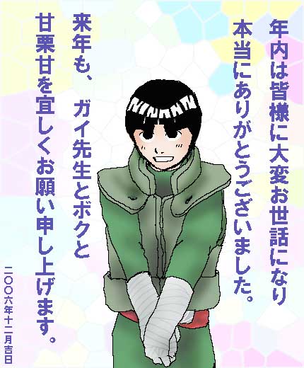 昨日トップには飾ったのですが、改めて・・・。今年の六月に【甘栗甘】オープンしてはや半年・・・。皆様のお陰で、楽しく一年を送ることができました!!ありがとうございました!!来年は原作も、アニメも激震のNARUTOになりそうな予感がしています(涙)より広く、深く、NARUTO世界を堪能したいと妄想中です(苦笑)さて、ナル友の皆様とは・・・来年はぜひ壮大なオフ会を、したいですよね!なおりんちゃん、何でしたっけ?ナルトのドームイベントと、夏コミと、映画・・・?が重なる時期??皆はいつごろだったら良いのかな??夢?夢で終わらせたくないぞ!