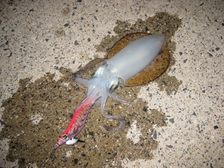 昨日は、仲間2人とまたまたアオリイカを釣りにいきました。開始一時間後くらいに、リールのハンドルがテトラポット下に落ちていきましたよ...きっついトラブルです!その後は、仲間もまだ釣る気満々だったし、仕方ないので気合で手巻してました...。そして、しばらくすると...今季で最大サイズのアオリイカ釣れましたハンドルがないと重すぎて、自分の手だけじゃさすがに回らなかったので、友達にも手伝ってもらいました。お前も巻いてくれ!ってその後は、みんなで焼肉したり、イカの刺身を食ったりしました。明日は新しいロッド、リールを調達するつもり。諭吉が飛ぶので嫁さんにも許可をもらって...(笑)