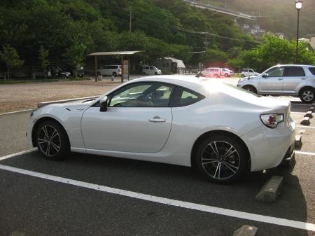 3日前に86がようやく納車されました今日は慣らし運転もかねて、嫁さんと山道を走ってきた。燃費の方は12.3~12.5あたりなので、カタログどおりの数値がでていますねアイドリング中にナビの設定をしたりしているので、実際はもうちょっと上がりそうかな?という印象を受けました。乗り始めは、やっぱりクラッチやアクセルの感覚をつかむのに時間も必要としました。半クラになる位置が分かりづらい感じがしましたが、こっちは慣れでなんとかなりそう。ただ、アクセルの方は慣れても難しいような気がした。少し踏んだだけで、必要以上に回転数が上昇する...慎重にじわーっと踏んでやらんとダメなんで、けっこう気を使いましたね意外と使えたのがナビかな。最終的に6月に発売されたトヨタ純正のスマートナビを取り付けましたが、値段の割にはけっこういい感じでした。嫁さんは、スイッチ部分が蛍のように点灯するって気に入っている様子でした。まあ、こういうのはカタログにも書いてない事だし、ちょっとした演出があると、得した気分になりますね