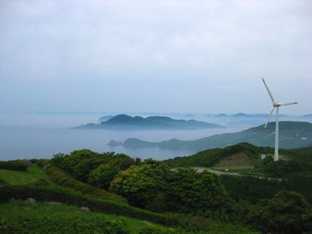 來來亭に行った後は、ふと思い立って長門市日置中の「千畳敷」に行かないか?って嫁さんに提案してみました。嫁「で、千畳敷ってここからどれくらいかかるんですか?」俺「知らん」嫁「じゃあ、どの辺にあるんですか?」俺「長門の角島のあたりかな~」嫁「えーそんなところまで行くんですか?」俺「俺が車乗ったらどこにでも行くの!なめんなよ~」嫁「千畳敷ってどういうところなんですか?」俺「峠だよ?攻めに行くうそ。日本海を高台(標高333m)から眺める事ができるのよ」俺「天気悪いから、あんまりかもしれないけど...」嫁「へ~。いいですね~」というわけで、ちょっとゴリ押しですが、千畳敷に行ってきました。県道66号線に入り、しばらくすると、急な傾斜...俺「よし...ヒルクライムだ!ていうか、やばくない?この坂...登るか?」嫁「すごいですね...」俺「アクセル、ベタ踏みしてるのに30km/hしかでないよ?」嫁「がんばれがんばれ~」俺「写真なんか取ってる場合じゃなかったなあ?加速してから登るんだった...」てっぺんは草原が広がっています。アスレチック遊戯もいくつかあるので少し遊んでみましたが、ブランコに乗ったら気分悪くなりました天気が悪いので、日本海は綺麗に見えませんでした。なんか幻想的な感じですね。ネットでいくつかのサイトを見ていたら、天候によって海や空の見え方がけっこう変わるみたいでした。近くには、カントリーキッチンというカフェもあり、食事をする事もできますが、ラーメン食べた後だったのでソフトクリームを食べました。下る時の景色も綺麗だったけど、登る時のようにスピードがでない事はないのであっという間に景色が流れていきました。角島はここから1時間の距離で、ついでに寄っていく?って提案したら、天気がいい日に行きたいそうで、さすがに却下されました
