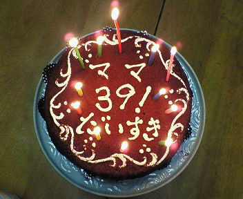 本日をもちまして、私、1つ歳とってしまいました・・・ はっぴば~すで~ とぅ~ みぃ~ あ~、もう気付けばこんな年齢。母がこの頃、私はもう成人近かったのに・・・ま、健康に気をつけ、楽しくハッピーな1年になれるように努力します。適度に運動も・・・ピくん来日時には、少しスリムになってお仲間に会えますように・・・ で、今子供たちとばあばは、散歩。お年玉を持って、ママにプレゼント買いに行ったらしい。隠してたけど。だから、私は主人と二人で、ランチでもしてきます。駅前に行くだけだけどね。さっき、DS版『おいでよ どうぶつの森』開いてみました。うちの家の前に、やよいちゃんが待っててね・・・『おたんじょうびおめでとう!』ってプレゼント持って待っててくれたの。たいへいたくんと、アンチョビくんの3人からなんだって。開けてみたら、バースデーケーキや壁紙など。なんだか、とっても嬉しかったよ。ありがとう ん??あ、ちょっと、オタクっぽかったかな・・・あははは 楽しかった冬休みも今日で終わり。チングなつみちゃんや、ふ~みんには、本当にお世話になりました。正月そうそう、3泊もさせてもらい、遊び三昧なんですもの。お父様たちにも協力していただいて、本当に楽しかったです。実家で里帰り、のんびりできた~ って気分。ステキな温かい友人たち、私の宝物です さあ、明日から新学期。やっとだ、嬉しい !!気持ちを切り替えて、新しいこと、頑張りま~~~す♪これからも、どうぞヨロシク・・・[追記] 娘たちから、プレゼントとケーキをもらいました。 このメッセージ・・・笑っちゃいました!! 何歳になったかって?? ふふふ・・・ この「39」というのは、『サンキュー(いつもありがとう)』の意味だって 深い意味はないそうよ・・・??