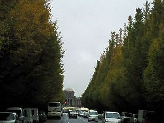 しつこいけど、また外苑見てきました。 やっとキレイに色付いてたよ~♪ しかし、遅かったね。もうすぐ年末だよ!! この外苑いちょう並木道は、キムタクとの思い出があるの。(勝手な思い出) わがヨンジャ家、車で国道246(青山通り)を渋谷方面に向っていた時のこと。 ちょうどこの交差点で信号赤になり、先頭に止まりました。 隣には、右折待ちのバイクお兄さんが!!なんと素敵な方なの!? 私と運転していた旦那、同じ事を思ったくせに、なぜか口にだすことをためらった・・・ 青になり、曲がっていく彼をいつまでも見てしまった。曲がった先には、幼稚園児たちの列が。 しばらく沈黙。そして・・・ さっきの人、キムタクみたいにかっこよかったね・・・(*^_^*) え?やっぱ?俺もそう思ったんだ?( ̄□ ̄;)!! じゃーきっとそうだ!!(ここでやっと)ぎゃぁ~!キムタク~!! 常盤貴子ちゃんとやってた、ビューティフルライフだったっけなぁ? あの撮影に出くわしたのであります! 初回では、その交差点右折をした先に、ちゃんと園児の列も映ってました。 このドラマ、よく覚えてないけど、感動してすごく良かったような・・・ そしてまだ、次女はいなかった頃の話だったなぁ。 というわけで、思い出の場所なのでありました~! 二児の父でありながら、いつまでも若々しく素敵ですね。 明日は幼稚園、珍しく水曜なのにお弁当あり!! バスタオル級に号泣という韓国映画『ファミリー』見たかったけど時間が合わなくて。 もしかしたら、『武士の一分』に行ってこようかなぁ~(^!^)y~