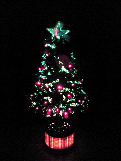 皆さん、風邪ひいてないですか??幼稚園で水疱瘡が発症してから、パラパラ広がっております。他に、お腹の風邪・溶蓮菌・・・様々な病気が蔓延しております。我が家は、鼻たらしてるくらいですんでおりますが。今日は、次女の幼稚園のクリスマス会。 キリスト生誕の『聖劇』をやりました。宿屋の女将さん・・・まあ地味な役です 幼稚園、残すところの大イベントは、卒園式だな・・・ちょっと、昨日嬉しかった話を、聞いてやってください~ 町並みもクリスマスのイルミネーションが華やかになってますね。地元でも、商店街が頑張っていて、色んな所を飾ってくれています。皆さんのおうちでは、飾りつけされていますか??我が家、まだツリーを出していなかったので、日曜に倉庫を探しました。でも、いくら探してもナイのです・・・母に聞いてみると、「あ~、捨てたわよ 」 え~~~??ま、確かにすごく古い物で、葉の部分もパラパラ落ちて、寂しいツリーでした。でも、私になんの断りもなく捨てるなんて・・・ いくらなんでも、ツリーないと寂しいよね。まだ小さいし楽しみにしてるもん。でも、この辺売ってそうなトコロないし、定価じゃヤだし・・・トイザらスも近くにないし・・・と、落ち込んでました。昨夜はラーメンが食べたいと言うリクエストのもと、チャーシュー煮ようと顔なじみの肉屋さんへ。最近ここのおじさんおばさんと、いつも長話しちゃうんだ^^うちが焼肉屋ということを知らないようで、レバ刺しとか、焼肉用肉を薦められる。地元で父は、芸術家だと思われてるらしい。本職は焼肉屋なんだけど・・・いつものように、『脂身少なくって柔らかいならココが一番!!』とか親切に説明やタコ糸巻いてくれたりしてた時のこと・・・「商店街のスタンプ台紙いっぱいになってたら、そこのツリーと交換しない?」え??ツ、ツリー???なんとタイムリーな話!!見たら、ステキなファイバーツリー!「いいんですか~??絶対1冊はたまってます!!」「じゃ~お子さん喜ぶから、今日持っていきなよ。台紙はいつでもいいから」あ~、人情のあふれるこの地元商店街。なんとか復興のお手伝いをしよう!!と、心に誓ったのでありました。というわけで、新しいツリーがやってきました。 大きさもお手ごろ^^なんか、小さなシアワセ