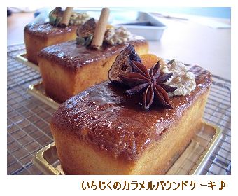 design++dalu++●●*●●*●●*●●*●●幼稚園からお休み人数の報告が。。。娘のクラスは二人ですが、年長さんでは、7人~8人お休みしているクラスもあるようで、これからが心配です今日もお菓子教室に行き、ケーキ作ってきましたとはいえ、今日はシンプルにパウンドケーキ。中にカラメルソース、くるみ、ラム酒漬けしたいちじくを混ぜ込んだちょっと大人のパウンドケーキ。ミニパウンド型で焼いて、上にトッピングすれば、なんだかケーキ屋さんみたいじゃないです???●●*●●*●●*●●*●●