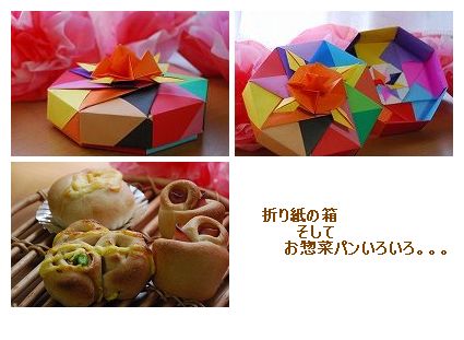 design++dalu++●●*●●*●●*●●*●●今日も寒いですね。。。なんだかちょっと風邪気味です朝から”初期症状の。。。”の風邪薬に栄養ドリンクのダブルでどうにかせきとめっ。できたかな???娘のお誕生日にとお友達のパパが作ってくれた折り紙の箱です中にはお友達が作ってくれた手作りクッキーが(食べちゃいました。。。)すごくないですかぁ???パパさんが人からいただいたものを分解して、作り方を試行錯誤して娘のために。。。器用すぎるぅありがとぉございますそして、お惣菜パンいろいろ。。。お友達のところでみかけた”バラパン”いまいちの出来その他。。。今日は何を作ろうかなぁ???●●*●●*●●*●●*●●