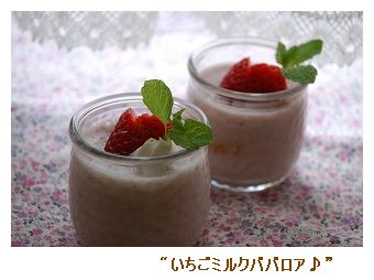 design++dalu++●●*●●*●●*●●*●●昨日はなんだか寒気に関節痛、腹痛まできちゃって、絶不調だった私娘とともに8時半には寝たのがよかったのか、今朝は絶好調。。。とまではいきませんが、回復ですお天気もいいことだし。。。っと、お布団干してシーツ洗っちゃいました洗い立てのシーツは気持ちいぃ!!!先日作った”いちごのミルクババロア”ですいつもおいしぃご飯やデザート、パンがたっくさんで、センス抜群のなおさんのレシピで作りました春色のとぉってもおいしいババロアっ!娘と二人、おやつにいただきました。なおさん ありがとぉ娘の幼稚園では今日マラソン大会がありました寒くなった時期から、半そで短パンで、園の周りをマラソンしていたのです。今日はいつもより長く走るものの、特に順番を競うわけではありません。娘に”がんばったぁ”って聞くと”うん。でも背の順やでぇ”と冷めた返事。。。とはいえ、いろいろな行事をとても楽しんでいるようです。今は年長さんを送り出す歌を練習しているとのこと来年は娘が。。。きゃー●●*●●*●●*●●*●●
