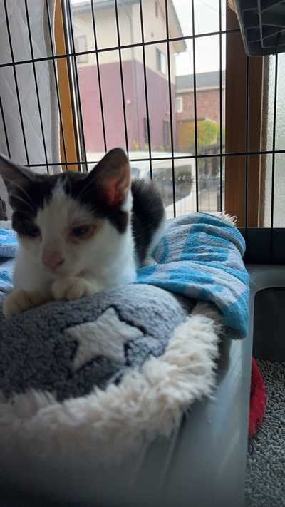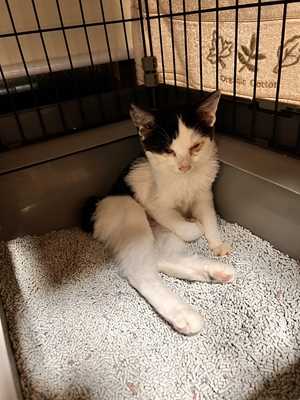 とっ捕まえた白黒ハチワレの子。
