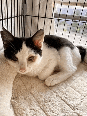 翌日手術の白黒ハチワレメス猫三カ月