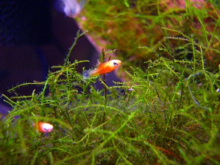 ヤマトが食べていました・・。稚魚君たち生き残ってくれ~(人-)願(-人)願