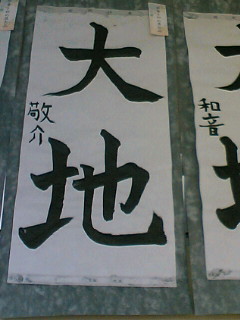 今夜職場に野暮用があって行ってきた。そこにスタッフ菊地が遊びに来ていた。聞いて聞いて~~とスタッフ菊地・・・昨夜GSに行った時のこと・・・久々に満タンって言ってみるか・・・「満タンお願いします」満タンにすると窓を拭いてくれたりサービスが違う。そして窓を拭いてもらう時にワイパーを立てられた・・・すると・・・右側のワイパーのゴムがぺロリーンと垂れてきた。あらら・・・。まずい・・・。そうだった・・・右のワイパー壊れかけてたんだった・・・「ワイパー、どうしますか?取り替えますか?」と店員・・・「ワイパーって右と左一緒に交換しなくちゃだめですよね」・・・菊地・・・すると店員から思いがけない言葉が・・・「・・・あれ・・・左のゴムないっすよ。右よりひどいっす。今までこれで拭けてたんですか?」・・・まったく気が付かなかったらしい・・・左側のワイパーのゴムがなくなっていたことに・・・。なくなる前に、右のワイパーがそうなったように「ぺロリーン」となるだろうが・・・一気に取れてしまったのか?いずれにしろ、今まで気がつかなかったスタッフ菊地・・・昨夜GSで窓を拭いてもらってなかったら、またこの先しばらくは左ワイパーのゴムなしに気が付かなかっただろう・・・。今日の休みは一日寝て過ごしてしまいました。泊まりの日、一時間くらいしか睡眠とれなくて、そして午後から時間をもらって息子の授業参観に行ったり・・・睡魔と闘いながら頑張りました。仲良しパパとも久々に会えて子供の話をしたり、いろいろ話せたのでよかったです。それより・・・息子・・・隣りの子と話し合って計算を解かなくちゃならないのに・・・シャープペンをいたずらしていたり・・・座り方が悪くて先生に直されたり・・・。まったく・・・後ろから行ってポカリとやりたかったですよ・・・。といえども親の躾なんでしょうね・・・お正月に食事の仕方を注意され、私も今まで以上に厳しくしてるつもり・・・普段の生活態度ももっとちゃんとせねば・・・と感じました。ま、そんな息子ですが。。。今年もまた賞状をもらってきました。写真は「市書初め展」で入選した作品です。まだ学校に展示してあったので写メ撮ってきた。。。「普段は下手っぴな字書くくせに・・・立派だ!」とお褒めの言葉を頂き・・・親の顔が見たいです!(って、わたしだ)今、家のボイラーが壊れお風呂に入れません・・・「ボイラーのお金、どこから出すんだーー!」と義父が怒鳴ってましたが・・・そんな怒鳴られても・・・壊したのは私じゃないし・・・。20年近く使っていれば調子悪くなったり壊れたりするだろうし・・・。さ・・・久々にPC復活なので・・・作業でもしようと思います。